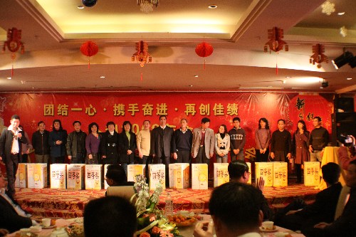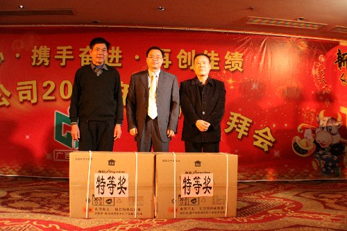 春节团拜会员工文艺表演精彩纷呈 歌舞飞扬让您目不暇接 春节团拜会上公司董事长黄鼎龙(中)给抽中特等奖的员工发奖并合影留念 精彩表演让大家乐开了怀! 排队领奖阵容庞大! 共同举杯祝福明天更美好!