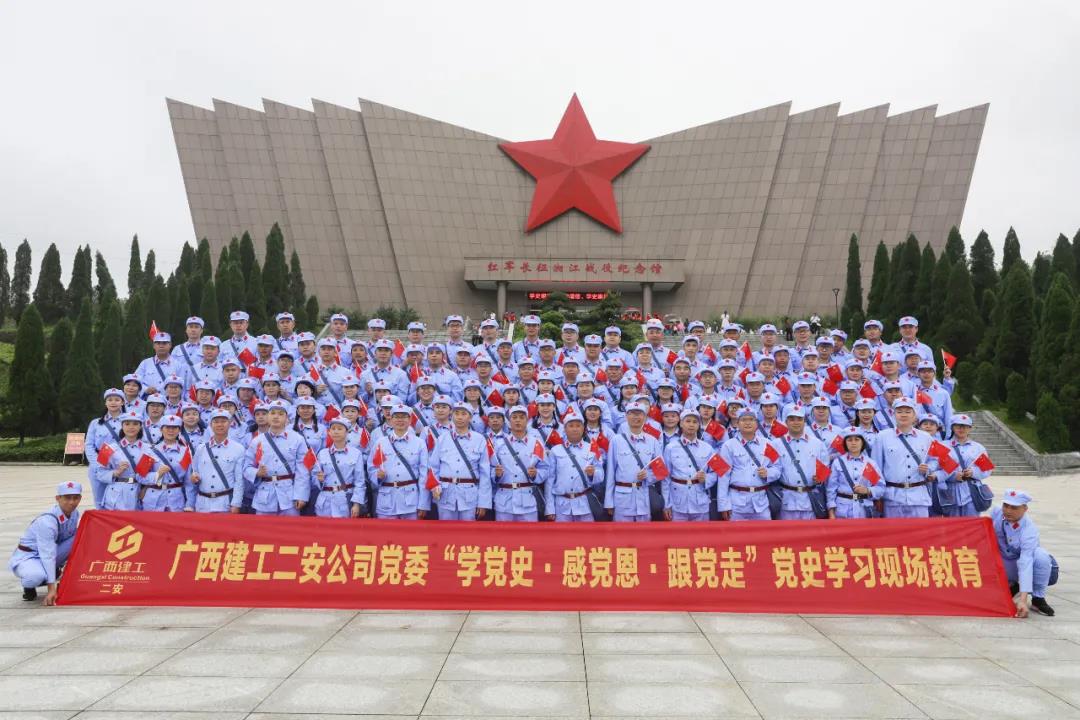 青山埋忠骨,山河忆故人。5月29日,公司党委组织总部党员、发展对象、入党积极分子和分公司党员代表到湘江战役纪念园开展“学党史·感党恩·跟党走”党史学习现场教育。公司党委书记、董事长潘海洪,党委副书记、总经理赵泽俊,领导班子成员黄水保、莫雄清、林建明、韦智中、江静、陶兴南参加。